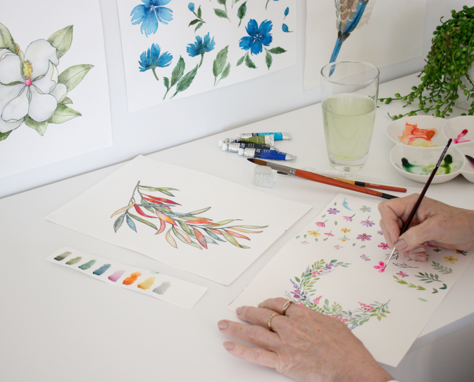 Combining watercolour and digital design to create beautiful repeat patterns and designs for your products and textiles